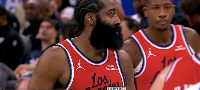 4场狂轰137分 哈登三节31分无奈打卡 快船13人轮换11人得分个位数