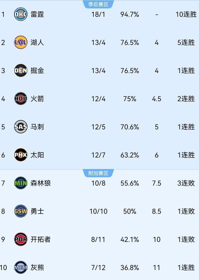 目前,火箭以12胜4负排名西部第四,勇士则以10胜10负排名西部第八,领先西部第11的爵士3.5个胜场。