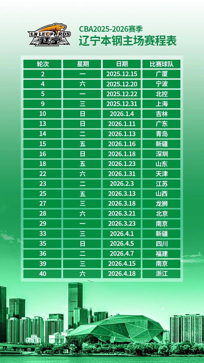 辽宁本钢队主场赛程表
