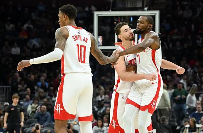 开赛以来火箭的赛程堪称联盟最轻松,打到现在仅仅打了17场比赛联盟最少,开赛两连败后过去15场比赛赢下了其中的13场,状态非常出色。杜兰特加盟后火箭进攻迎来质变,场均得分从上赛季的104分提升到121.6分,进攻效率122.3高居联盟第二,不仅如此他们的防守体系也没有受到破坏,110.3联盟第二的防守效率仅次于雷霆,篮板球、二次进攻得分依旧冠绝联盟。平心而论赛季初期的火箭虽然战绩长期稳居西部前三,但我还是很难将他们放在争冠球队行列,原因很简单!一号位太薄弱了,阿门汤普森面对防守强队完全没有组织能力,火箭只会陷入无限单打的死循环。但最近由于谢泼德的快速成长,火箭才成为了真正的冠军级球队,打完掘金、勇士两场硬仗后谢泼德真正完成升华,攻防两端完全可以替代范弗利特,甚至他带给球队的上限比范弗利特更高!