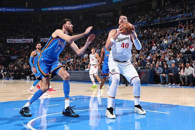 本场比赛中,快船的先发中锋伊维察-祖巴茨(Ivica Zubac)的表现令人大跌眼镜。祖巴茨全场出场31分41秒,投篮7中3,罚球6中5,仅得到了11分11篮板3助攻2盖帽的数据,其中还包括了3个前场篮板,还有2次失误和1次犯规,正负值为-14。祖巴茨在攻防两端的表现都令人有些失望,他的得分能力并不理想,他在对手内线并没有发挥出自己的实力和特点,他也没有什么其他方面的贡献。除此之外,祖巴茨在防守端也是显得有些软弱,不仅在内线防守方面显得有些吃力,而且他在移动速度方面的短板也是肉眼可见的。总体来看,祖巴茨在场上的效果非常糟糕,可以说是被雷霆各种针对。在对手先发中锋以赛亚-哈尔滕施泰因(Isaiah Hartenstein)缺阵的情况下,祖巴茨也没有办法起到更大的作用。