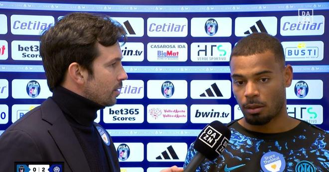 北京时间12月1日,在意甲第13轮的比赛中,劳塔罗完成的梅开二度帮助国际米兰在客场2-0击败了升班马比萨,终结了近期的两连败,赛后此战替补出场的安迪-迪乌夫接受了DAZN的采访。