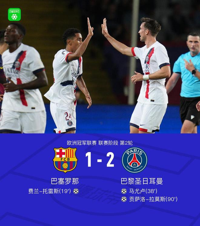 巴黎2-1逆转巴萨,贡萨洛绝杀,费兰破门+失空门,马尤卢建功