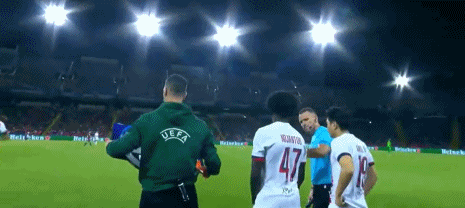 第57分钟,奥尔莫将姆巴耶球鞋踩掉,被出示黄牌